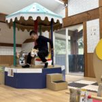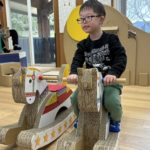 段ボールで作ってあるメリーゴーランド🎠に乗ったり