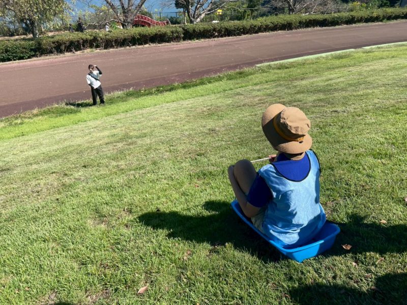 「こわい😣」と言っていた子も、やってみると「楽しかった😁」と繰り返し滑っていました。