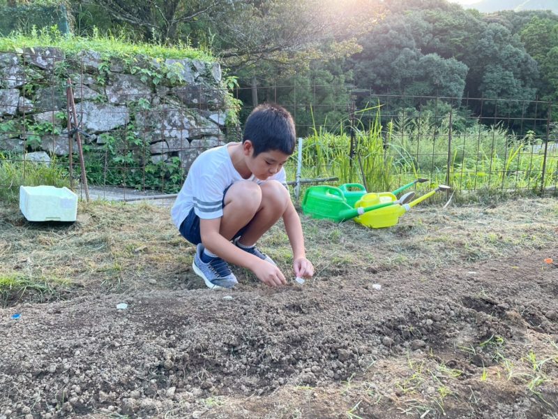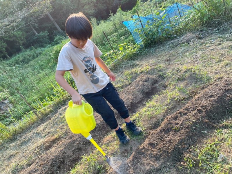 こどもたちは種を蒔いたり、水やりをしたり、雑草を抜いたりと頑張っています。