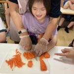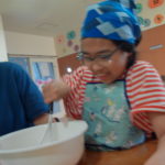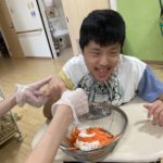 子ども達が頑張って調理しているところや