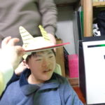 午前中の活動で一人ずつ鬼のお面を製作✂️